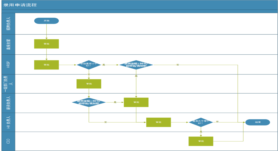 以入職為例,招聘員工計(jì)劃由用人部門使用招聘流程發(fā)出,通過接口進(jìn)入到招聘系統(tǒng)完成一系列的面試工作,完成要求后回傳給HR系統(tǒng),再次先前發(fā)出招聘申請(qǐng)用人部門,發(fā)出錄用申請(qǐng),這里涉及直接主管、HRBP、薪資負(fù)責(zé)人、HR等各審批環(huán)節(jié),審批通過后自動(dòng)觸發(fā)入職,入職觸發(fā)考勤開啟,薪資開啟和社保公積金開啟,在該過程中有任何問題系統(tǒng)終止個(gè)案員工的觸發(fā),并發(fā)出郵件告知HR。整個(gè)過程HR都是監(jiān)管者,先固化再優(yōu)化,最后自動(dòng)化,所有的業(yè)務(wù)過程由流程實(shí)現(xiàn);
