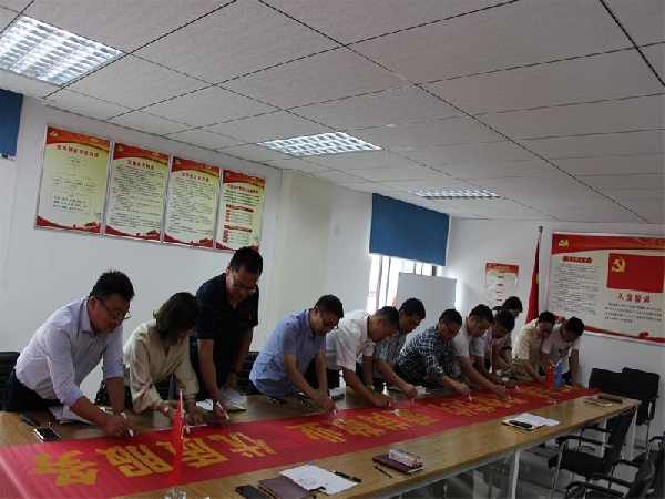 會后,安徽瑞特黨支部組織全體黨員干部簽訂《廉潔從業(yè)承諾書》,并在“廉潔自律 勤儉節(jié)約 愛崗敬業(yè) 優(yōu)質(zhì)服務(wù)”橫幅上簽字。