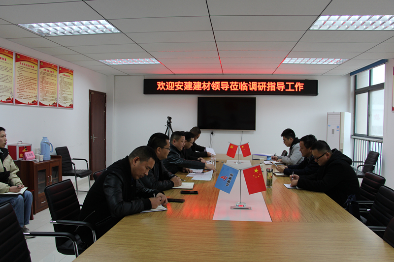 3月18日下午,安建建材副總經(jīng)理徐友修、市場開發(fā)部副部長吳昊赴安徽瑞特開展市場經(jīng)營調(diào)研并召開專題會議,會議由安徽瑞特黨支部書記、經(jīng)理施松主持,副經(jīng)理陳猛及營銷管理中心全體人員參加。