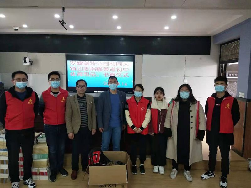 三月春風(fēng)入校園,雷鋒精神暖人心。3月16日下午,安徽瑞特團(tuán)支部志愿者服務(wù)隊(duì)聯(lián)合同大鎮(zhèn)團(tuán)委前往同大鎮(zhèn)黃道中學(xué)開展雷鋒月助學(xué)活動(dòng)。本次活動(dòng)向黃道中學(xué)捐贈(zèng)200余本課外讀物和足球、籃球、羽毛球拍、乒乓球拍等各類體育用品。