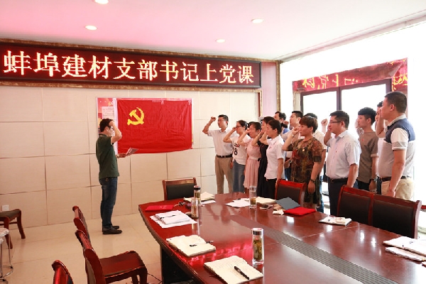 最后,黨支部宣傳委員張健帶領全體黨員面對鮮紅黨旗,重溫入黨誓詞。黨員們紛紛表示,要在今后工作中時刻以黨員標準嚴格要求自己,堅定理想信念,牢記職責使命,以更加飽滿的熱情踐行對黨的莊嚴承諾,為把蚌埠建材黨支部建設成為一流黨支部而奮斗。