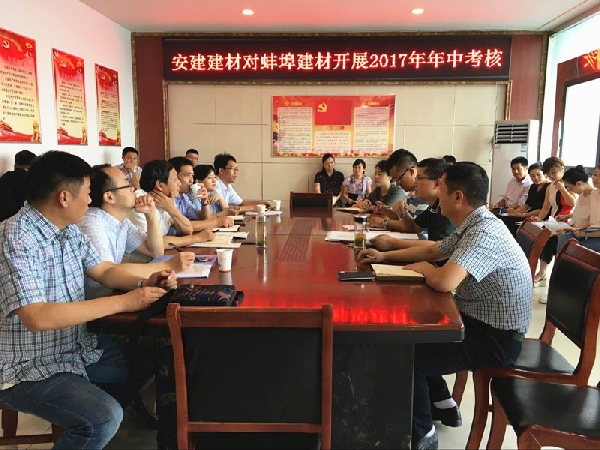 2017年7月3日上午,安建建材公司董事、副總經(jīng)理廖紹鋒帶領(lǐng)考核組一行來到蚌埠建材,對公司2017年上半年各項(xiàng)生產(chǎn)經(jīng)營完成情況進(jìn)行考核。