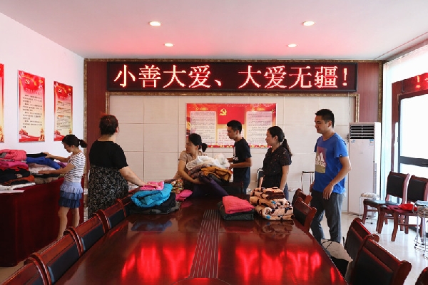 活動(dòng)期間,公司在一樓會(huì)議室設(shè)置衣物定點(diǎn)接收站,安排志愿者定期對(duì)捐贈(zèng)情況進(jìn)行登記、統(tǒng)計(jì),將舊衣物進(jìn)行簡(jiǎn)單的分批打包,目前活動(dòng)仍在進(jìn)行中。