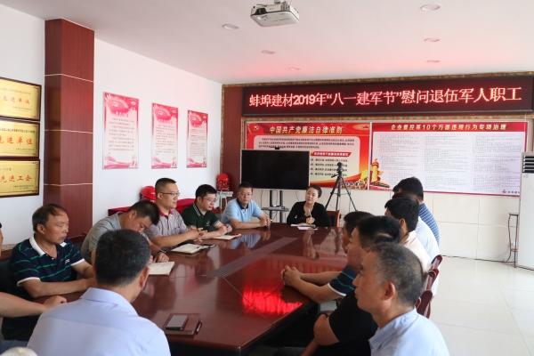 為紀念中國人民解放軍建軍92周年,讓退伍軍人感受到公司的關懷,蚌埠建材于7月31日上午組織開展慰問退伍軍人活動并召開座談會,公司退伍老兵和領導班子成員參加活動。