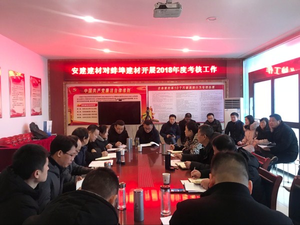 2019年1月7日上午,安建建材公司董事、副總經(jīng)理廖紹鋒帶領(lǐng)考核組一行來到蚌埠建材,對公司2018年度各項生產(chǎn)經(jīng)營完成情況進行考核,蚌埠建材班子成員、各管理中心主任參加了會議。