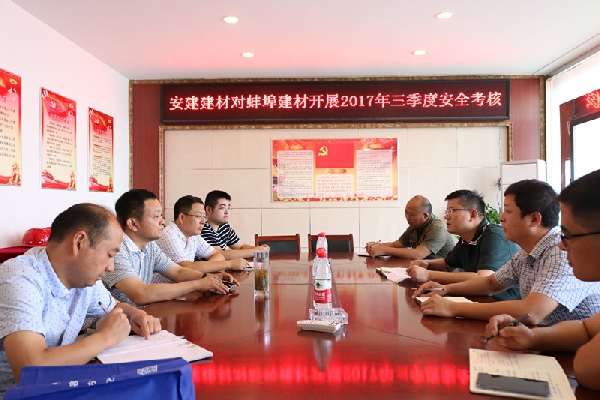 2017年9月18日,安建建材副總經(jīng)理徐友修帶領(lǐng)安全生產(chǎn)部部長周權(quán)等一行對蚌埠建材進行了三季度安全檢查考核。