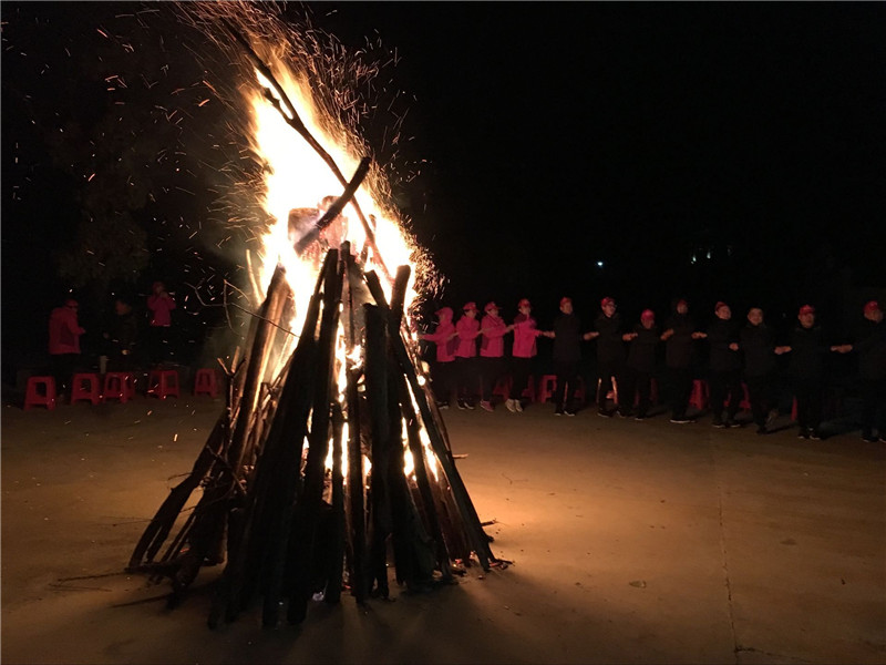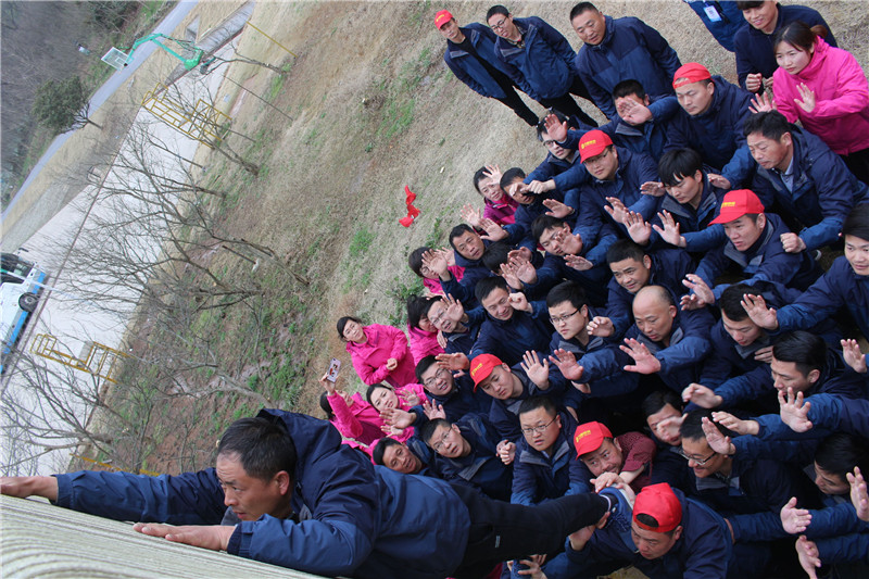 “篝火晚會”和“畢業(yè)墻”給大家留下了最為深刻的印象。夜幕降臨,我們?nèi)计痼艋?,開心的訴說著一天的激情澎湃與愉悅,歡聲笑語聲隨著火焰節(jié)節(jié)攀升,大家牽起手圍著篝火熱情起舞,做著游戲,感受著蚌埠建材大家庭的溫暖?!爱厴I(yè)墻”是本次活動的最后一個項目,也是最難、最具挑戰(zhàn)性的一項。這個項目要求全體隊員在最短的時間內(nèi)翻越一面4.2米高的光滑墻面,在此過程中大家不能借助任何外力。起初,每位隊員的內(nèi)心充滿著顧慮和膽怯。大家相互研究決定采用搭建“人梯”、上推下拉的方式進行翻越。誰做“人梯”?誰做第一個“勇士”?誰又做最后的“逃生者”?令人感動的是,許多男隊員挺身而出第一時間參與,發(fā)揚奉獻精神,最終各隊迅速依據(jù)每個人的具體情況作出了相應(yīng)的分工,確定了具體的順序。翻墻過程中,兩座“人梯”快速組成,幾名個子高、手長、力氣大的男隊員,首先踏上“人梯”,翻越畢業(yè)墻,留四名隊員在墻頭負責(zé)接應(yīng)其他隊員攀越,其他隊員則自覺舉起雙手,架起“防護網(wǎng)”。腳踩著肩膀、手挽著手……懷著必勝的信心,幾十名隊員依次順利的翻越了高墻,當(dāng)最后一人成功躍上墻頭的時候,響起了經(jīng)久不息的掌聲。在短短的22分鐘內(nèi),所有參訓(xùn)員工皆被安全輸送到了高墻之上。