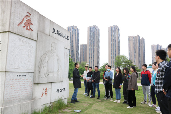4月23日下午3點鐘,在蚌埠建材綜合管理中心副主任、團支部書記胡忠楠的帶領下,公司青年團員來到張公山廉政園,集體參觀了“大禹聽五音治國”、“三過家門而不入”“朱元璋造字倡廉”、“水井論”等主題雕塑,在勤廉風采浮雕前大家再次學習焦裕祿和沈浩兩位勤政廉政楷模的事跡和格言。