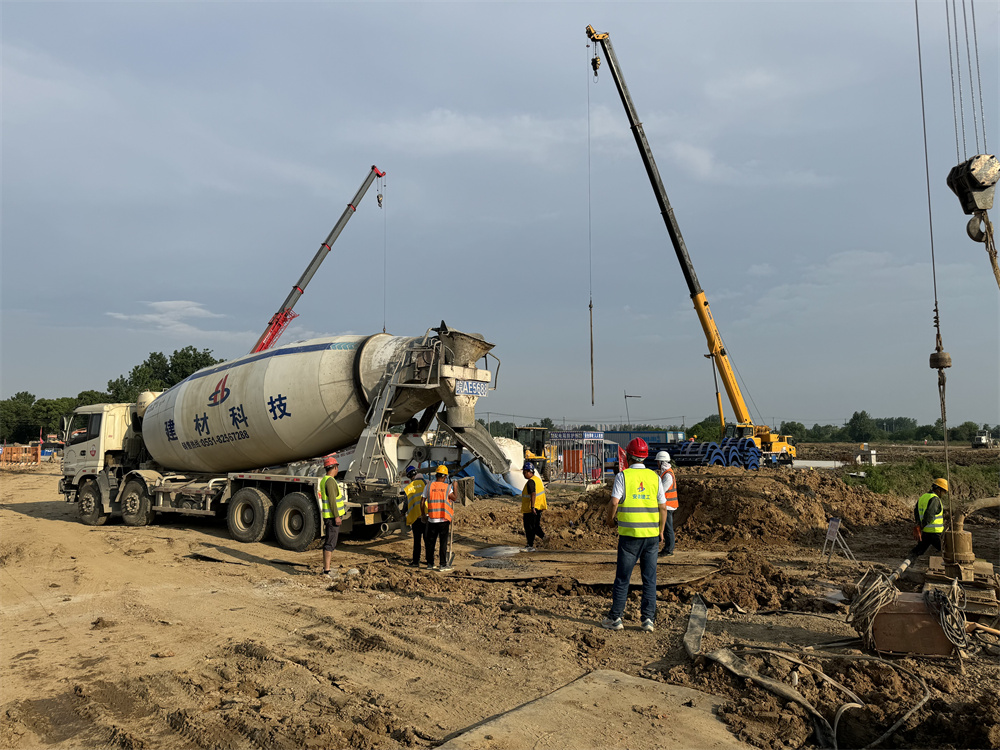 面對橋梁特殊要求的大方量水下樁基混凝土澆筑任務(wù),公司安排專業(yè)技術(shù)人員全程跟蹤控制,確?;炷临|(zhì)量穩(wěn)定性和施工性能優(yōu)良。在項目搶抓工期的緊要關(guān)頭,公司實行24小時輪班制作業(yè),日夜奮戰(zhàn)于生產(chǎn)一線,克服困難,以實際行動保障項目生產(chǎn)供應(yīng)。澆筑過程中,面對方量龐大、路況較差、夜間施工等挑戰(zhàn),公司憑借超強的執(zhí)行力和響應(yīng)能力,確保了混凝土供應(yīng)的持續(xù)性和穩(wěn)定性。