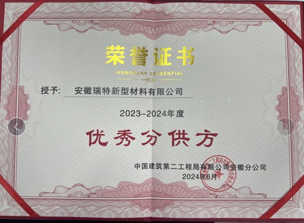 近日,在建工建材黨委的堅(jiān)強(qiáng)領(lǐng)導(dǎo)下,安徽瑞特憑借良好的服務(wù)信譽(yù)和雄厚的綜合實(shí)力,被中建二局評(píng)為“優(yōu)秀分供方”(物資供應(yīng)商)。