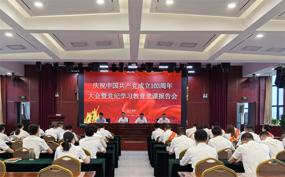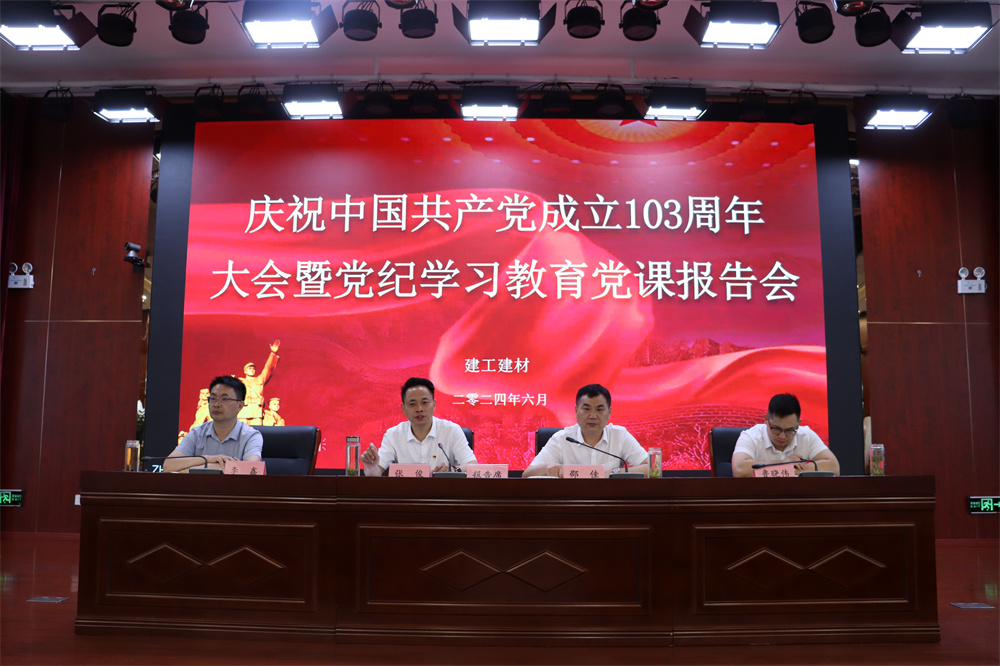 光輝歷程映初心,砥礪奮進建新功。6月28日,建工建材召開慶祝中國共產黨成立103周年大會暨黨紀學習教育黨課報告會。公司黨委副書記、總經理張俊出席會議并作專題紀律黨課,黨委委員、副總經理、工會主席邵佳主持會議,領導班子成員出席會議。