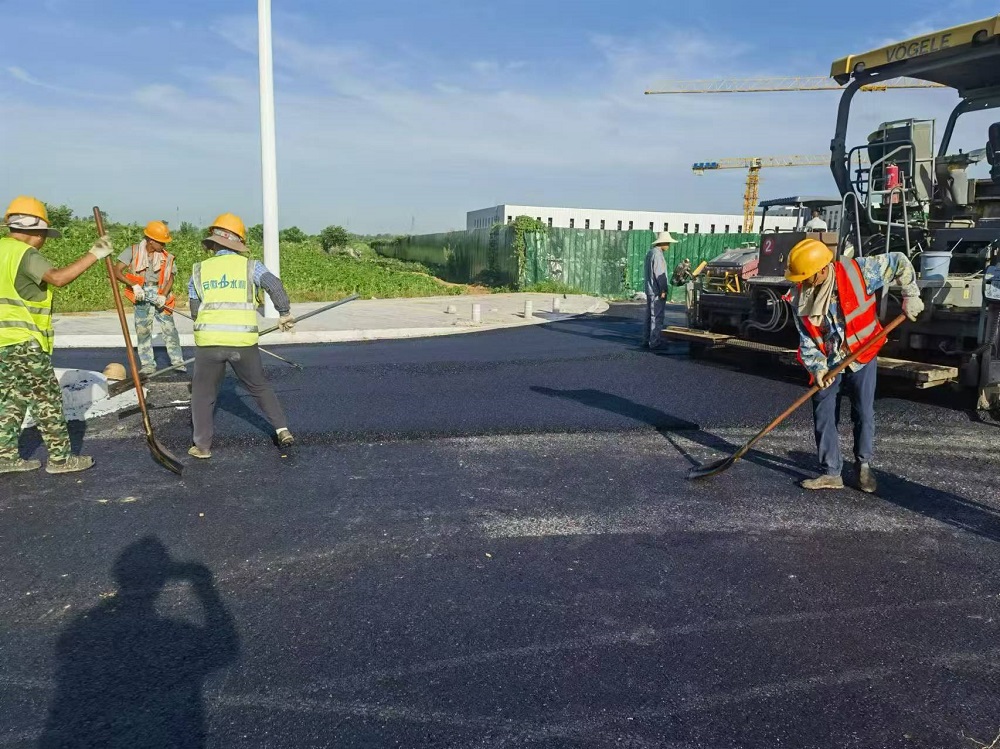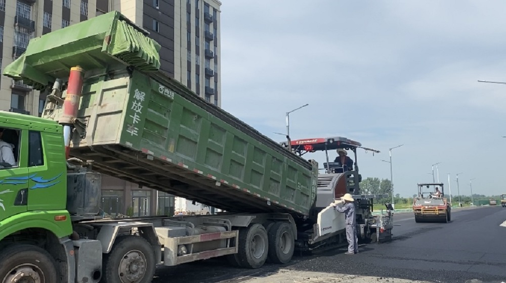 對于筑路人來說,高溫天氣是開展瀝青攤鋪的好時(shí)機(jī)。在蚌埠片區(qū)項(xiàng)目瀝青混凝土路面攤鋪現(xiàn)場,滾燙的瀝青灌入攤鋪機(jī),白色煙氣瞬間升騰,一股熱浪撲面而來。隨著攤鋪機(jī)緩慢前進(jìn),施工人員穿梭在瀝青蒸騰起的層層熱氣中,隨時(shí)用鐵鍬調(diào)整平整度。室外溫度35℃,瀝青混凝土溫度高達(dá)160℃,面對著雙重炙烤,嘉和建筑筑路人在高溫天氣中堅(jiān)守崗位,戰(zhàn)高溫、斗酷暑,全力以赴確保道路安全暢通。