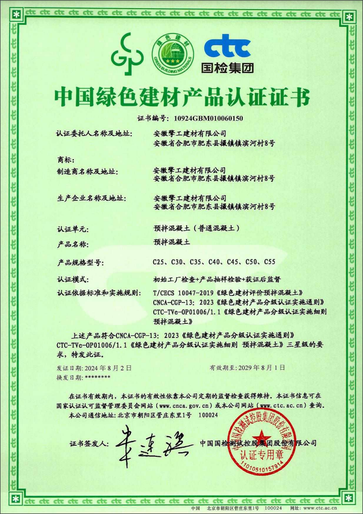 綠色引領,品質卓越——擎工建材榮獲綠色建材三星認證