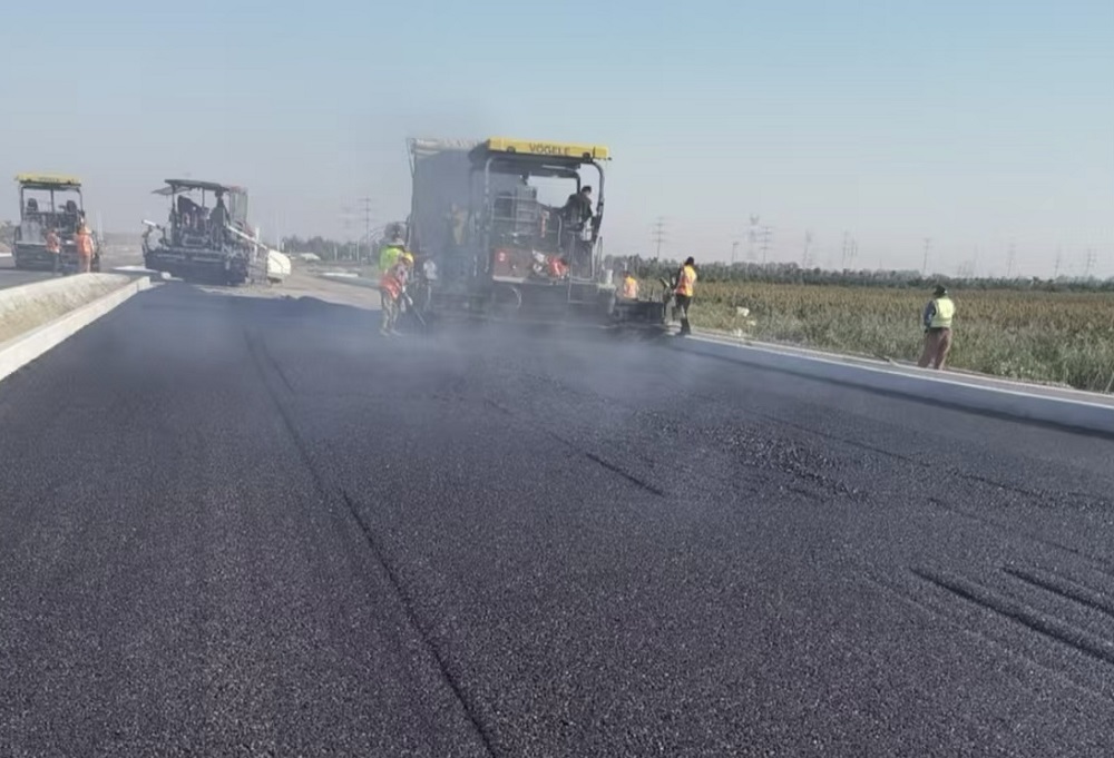 嘉和建材科技園臨港產(chǎn)業(yè)園基礎(chǔ)建設(shè)一期黃泥山路瀝青攤鋪順利完成