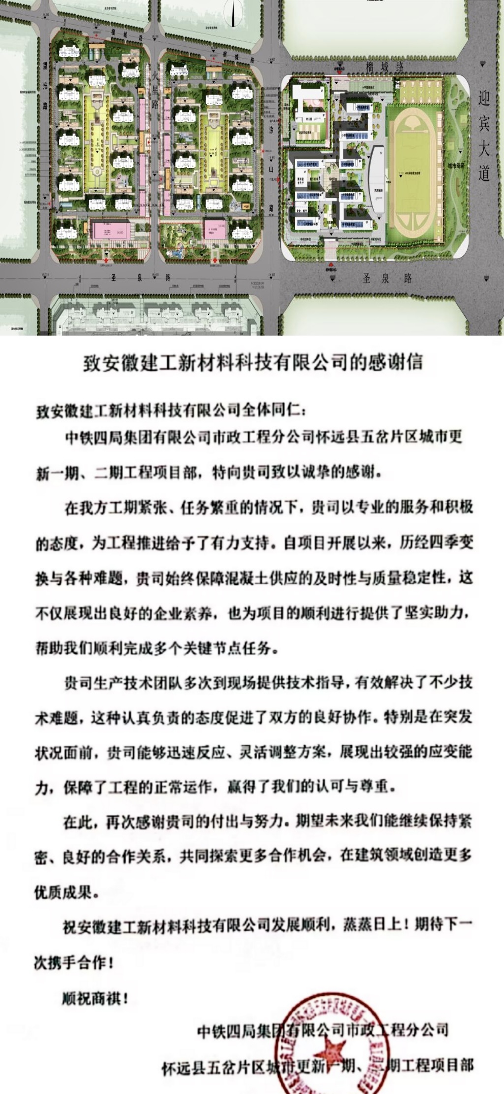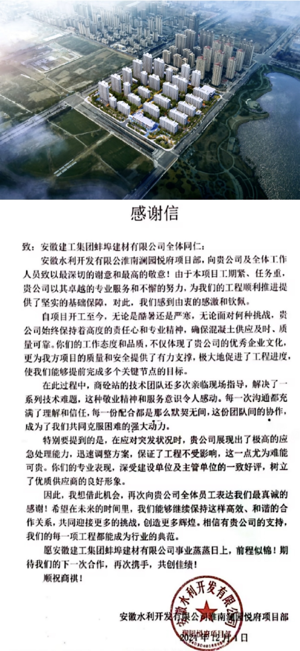 近期,建工建材憑借卓越的產(chǎn)品質(zhì)量、高效的供應(yīng)體系、出色的服務(wù)保障、精益求精的工作精神,收到了來自中國電子系統(tǒng)工程第二建設(shè)有限公司八寸線EPC項(xiàng)目、中鐵四局五岔片區(qū)城市項(xiàng)目、安徽水利淮南瀾園悅府項(xiàng)目、臨湖智能制造產(chǎn)業(yè)園項(xiàng)目的多封感謝信。