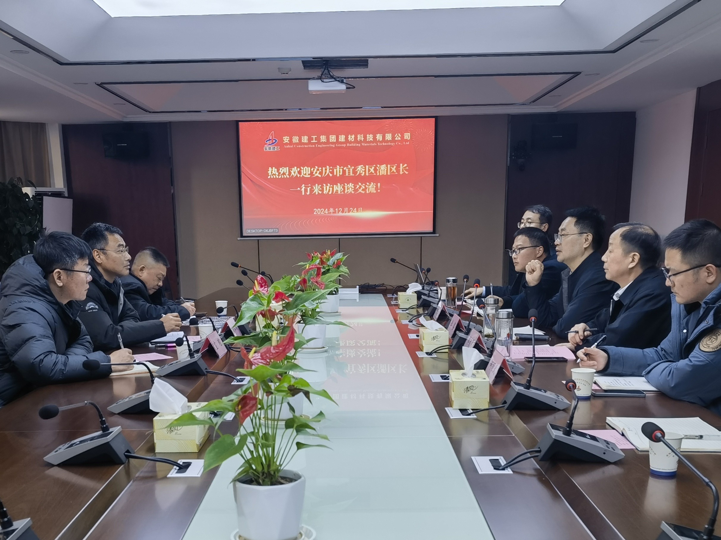 12月24日下午,安慶市宜秀區(qū)政府黨組成員、副區(qū)長潘長周一行到訪建工建材,公司黨委副書記、副總經理、董事李鑫熱情接待,雙方圍繞政企合作進行交流座談。