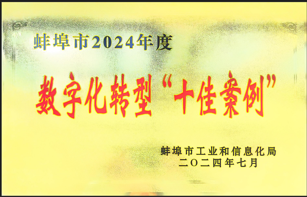 近日,安徽建工新材料科技有限公司被蚌埠市工業(yè)和信息化局授予蚌埠市2024年度數(shù)字化轉(zhuǎn)型“十佳案例”榮譽(yù)稱號。