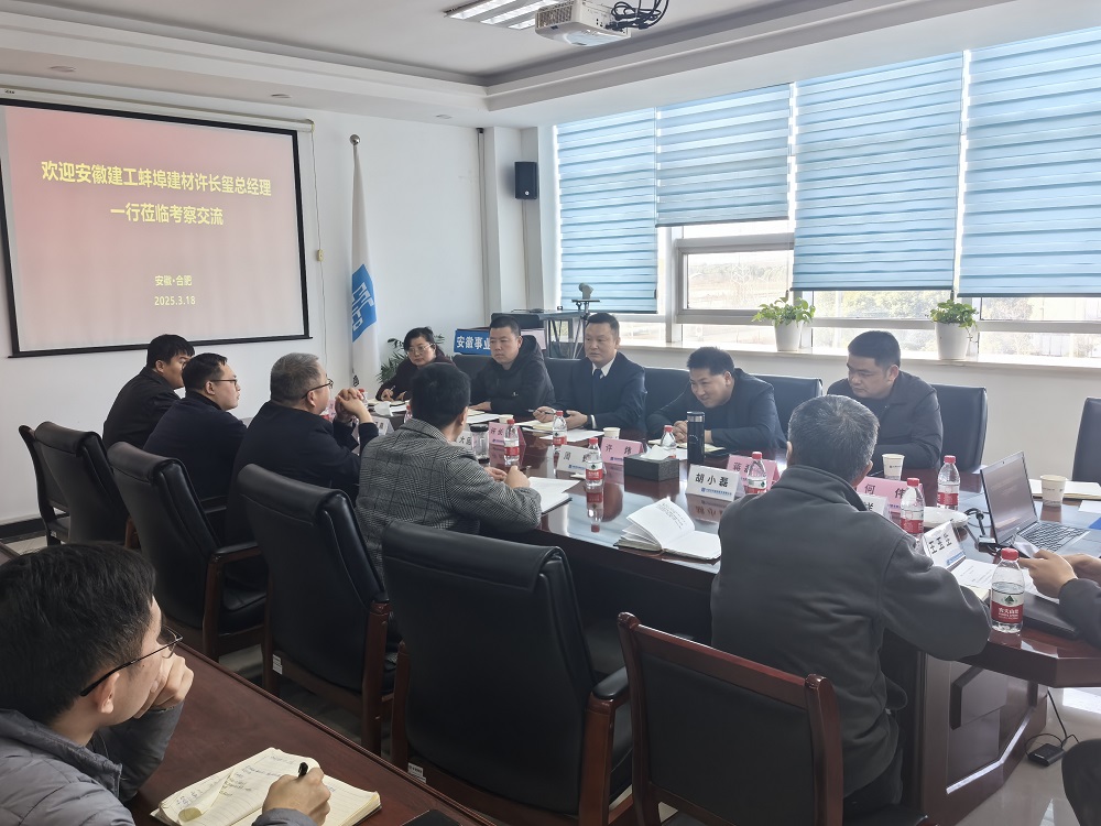 2025年3月18日,蚌埠建材黨支部書記、執(zhí)行董事、總經(jīng)理許長璽一行前往中建商品混凝土公司交流研討。中建商砼安徽事業(yè)部總工程師夏大回?zé)崆榻哟?