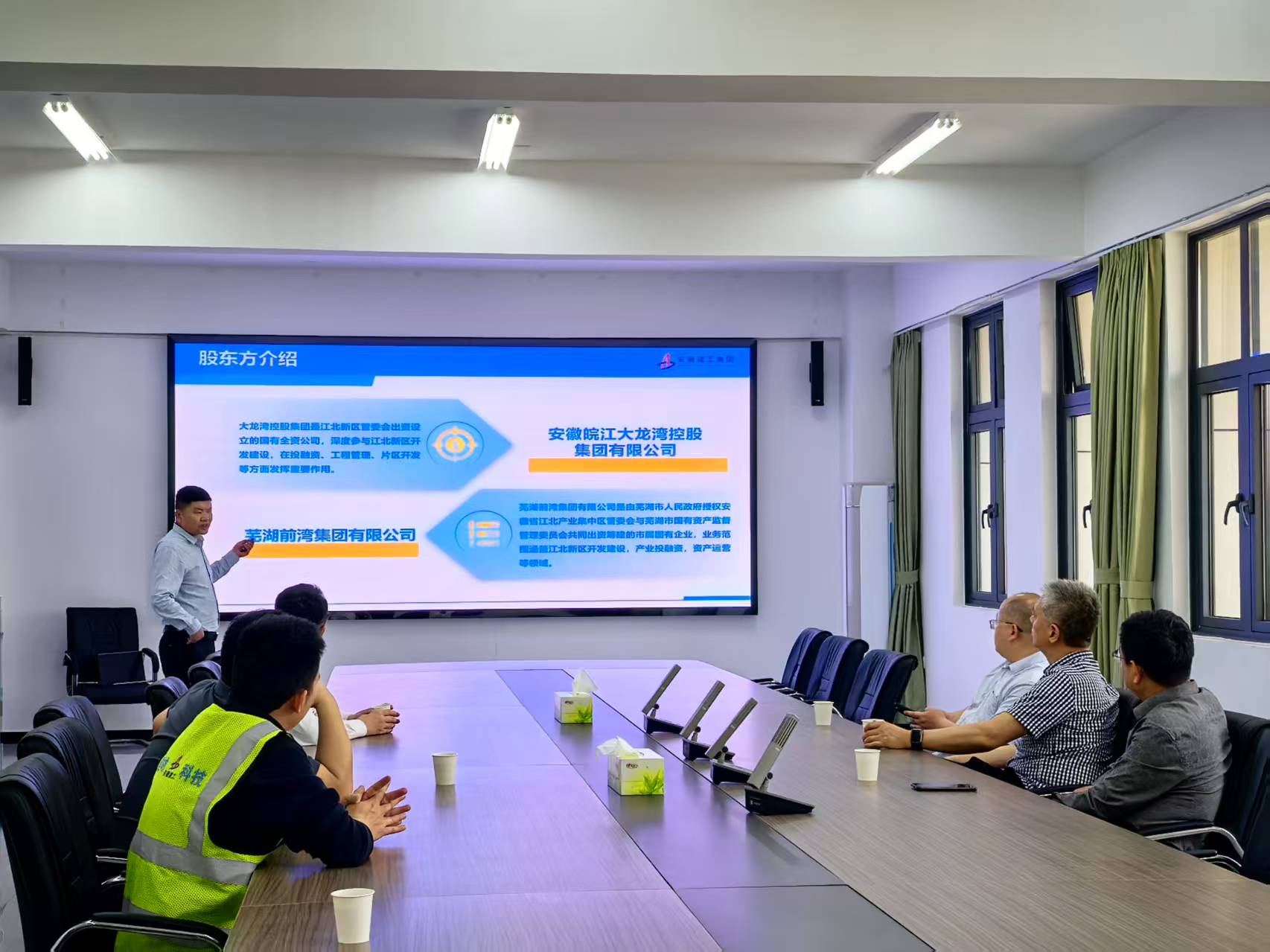 建工路橋橋梁分公司總工劉向前,皖江新材料總助張傳亮、劉文劍,及雙方有關(guān)部門負(fù)責(zé)同志參加交流座談。