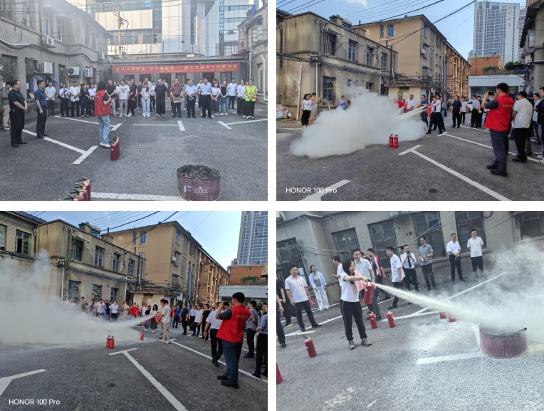 現場模擬大廈4-5層樓梯間突發(fā)火災,樓棟煙感消防報警響起,駐廈人員聽到警報聲后立馬用濕毛巾捂住口鼻,在樓層指揮員的引導下,從樓梯間逃生至室外安全區(qū)域。整個過程有條不紊,行動迅速有序。最后,專業(yè)人員現場講解并演示了干粉滅火器的實操要點和注意事項,部分員工踴躍上場進行了親身操練,熟練掌握了滅火器的操作要領。