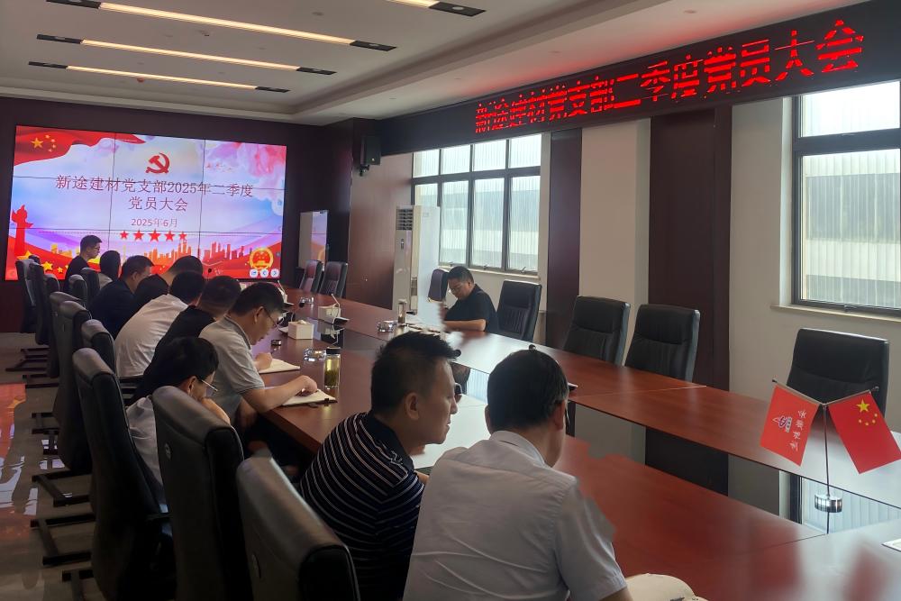 6月30日,新途建材黨支部在三樓會議室召開二季度黨員大會,會議由支部書記曹祝林主持,全體黨員參會。