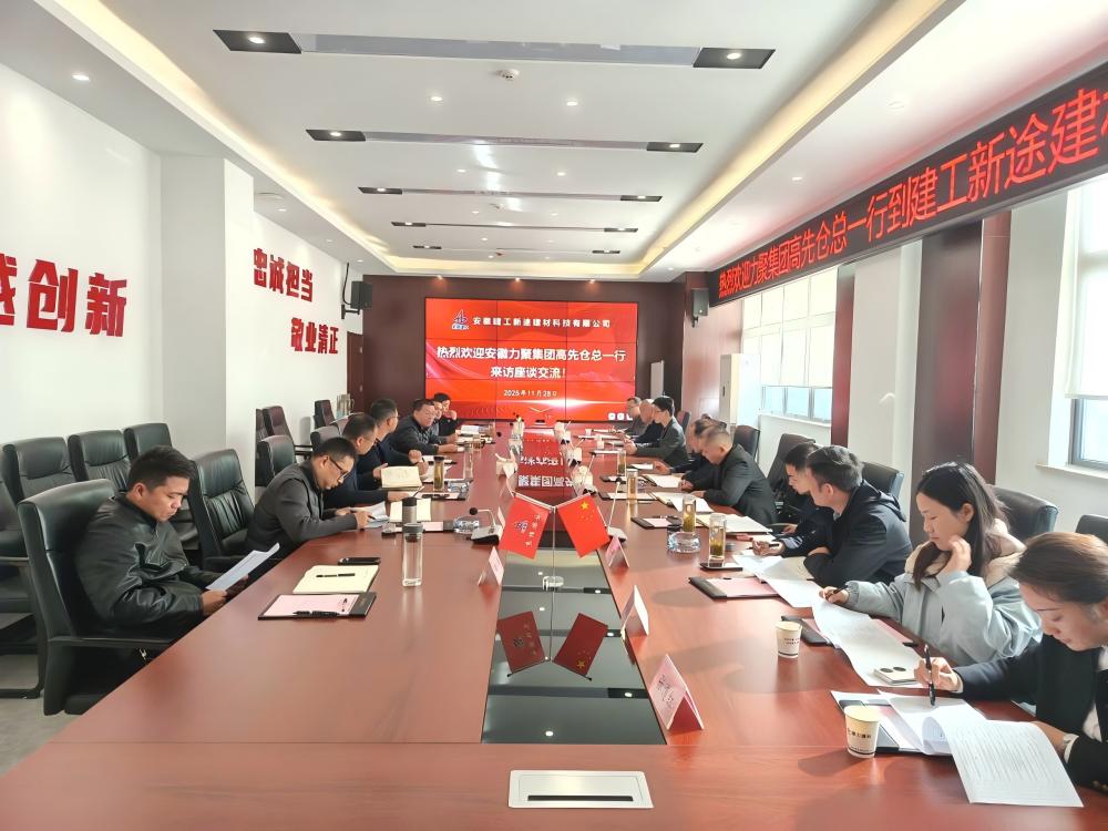 11月28日上午,安徽力聚投資集團有限公司總經(jīng)理高先倉率隊到訪建工新途建材,建工新途建材負責人邢大威熱情接待并主持座談交流。雙方圍繞各自歷史沿革、在建項目、資源優(yōu)勢、產業(yè)鏈等方面進行深入交流。