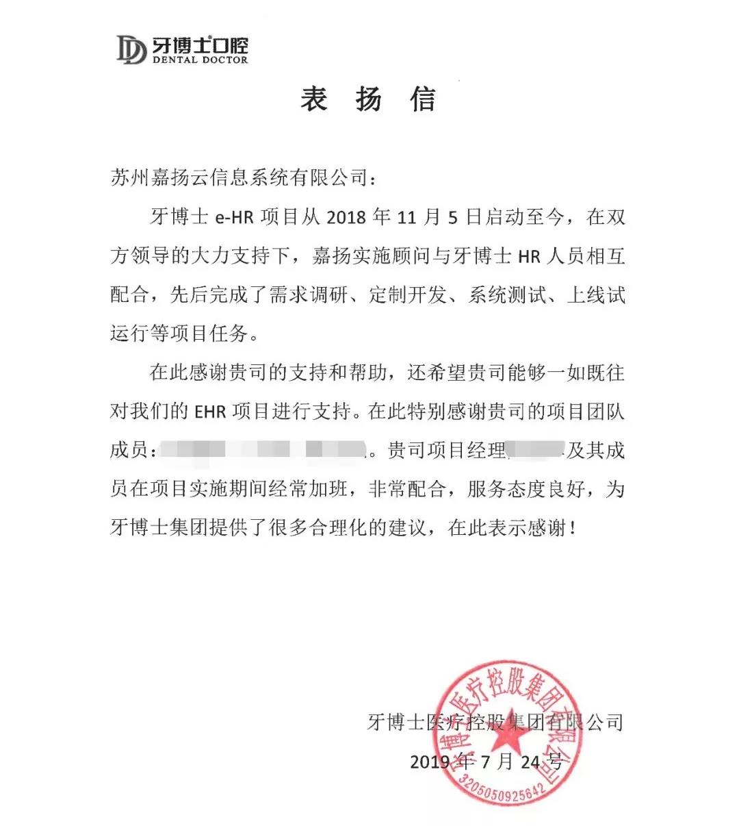 【表揚(yáng)信】來自牙博士醫(yī)療集團(tuán)