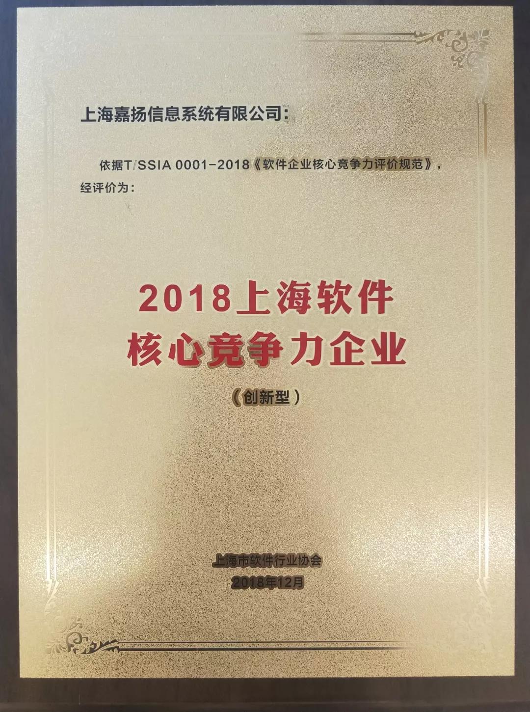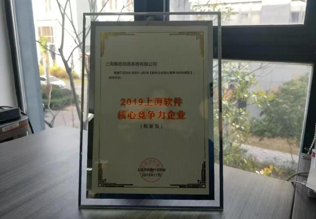 上海嘉揚(yáng)連續(xù)2年榮膺“上海軟件核心競爭力企業(yè)”稱號