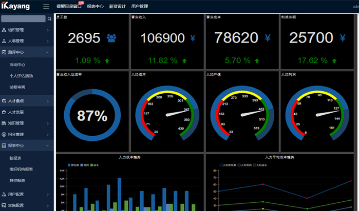 It may be challenging for HR to organize evaluations flexibly and ensure the truth and effectiveness of the evaluations. Kayang HR Dashboard can custom evaluation cycles and evaluation items, support weight calculations and uses the evaluations and records in daily work to verify the effectiveness of evaluations; it provides a more creative evaluation model for HR and gives an easy access to employee status and complete job information. It’s an important tool to assist HR in completing daily tasks. HR dashboard also has the features of data retrieval, filter and export. It is convenient for HR to complete the summary and reprocessing of various information.