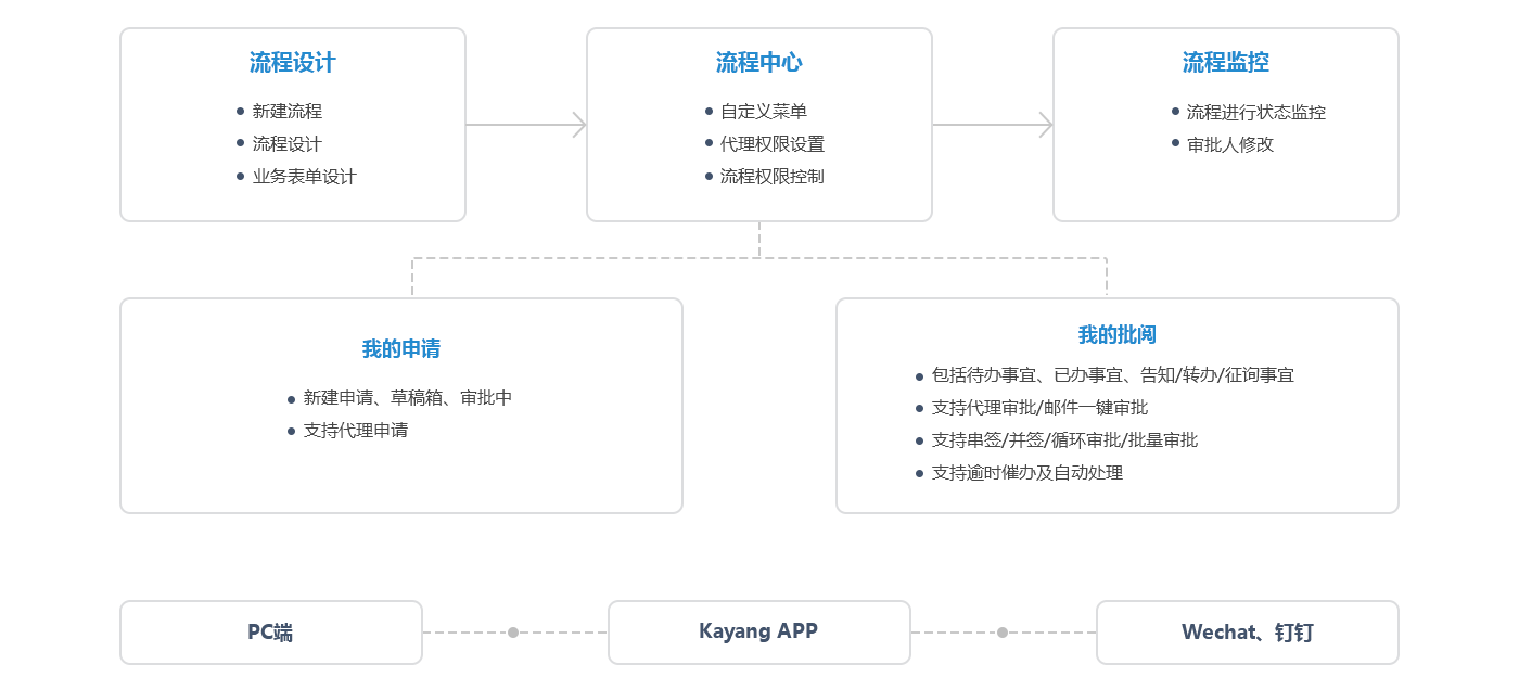 Support sequence flow, condition flow, rule flow and uncontrolled flow; Handle complex business processes automatically;