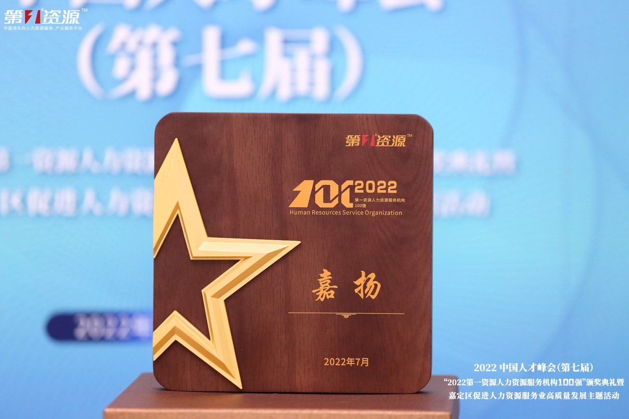 2022年7月8日,第七屆中國人才峰會“2022第一資源人力資源服務(wù)機構(gòu)100強”頒獎典禮暨嘉定區(qū)促進(jìn)人力資源服務(wù)業(yè)高質(zhì)量發(fā)展主題活動在上海•嘉定成功落幕,上海嘉揚憑借專業(yè)的服務(wù)和品牌影響力入選“2022中國人力資源服務(wù)機構(gòu)100強”。