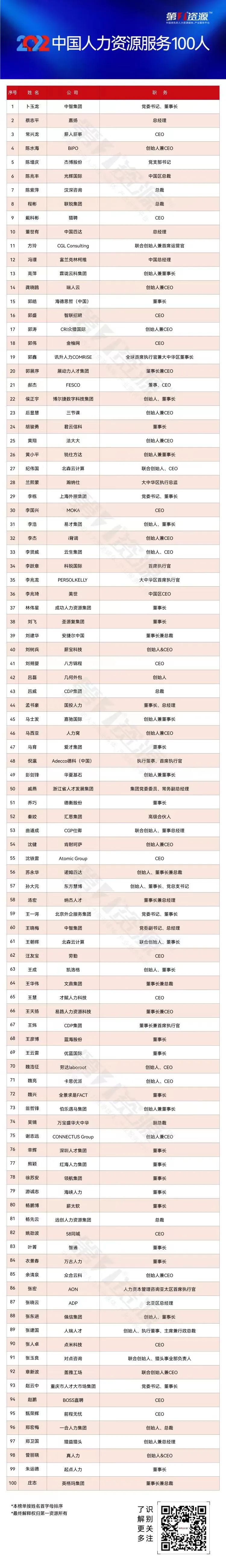 近日,人力資源行業(yè)內(nèi)領(lǐng)先的第三方媒體——第一資源重磅發(fā)布了“2022中國人力資源服務(wù)100人”榜單。