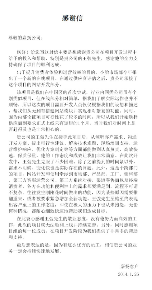 萊克電器股份有限公司特發(fā)感謝信嘉揚(yáng)蘇州分公司獲高度贊譽(yù)
